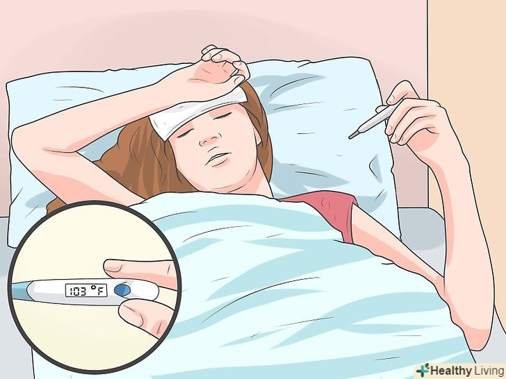 Зверніть увагу на високу температуру.хоча в більшості випадків зараження яе не проявляється зовсім або супроводжується легкими симптомами, приблизно в 1 з 250 випадків воно призводить до серйозного погіршення стану, яке часто починається з високої температури.[4] Жар служить захисним механізмом організму і спрямований на те, щоб уповільнити або зупинити поширення вірусів (або бактерій). Однак коли температура помітно перевищує 39 °С у дорослих або 38 °С у дітей, виникає небезпека пошкодження головного мозку. Викликані вірусом яе висока температура і запалення головного мозку можуть привести і до інших серйозних і небезпечних для життя симптомів.- Після появи серйозних симптомів японського енцефаліту, які зазвичай виникають у дітей з ослабленою імунною системою, ймовірність летального результату становить близько 30%.[5]