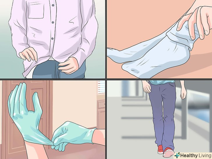 Користуйтеся захисним одягом.крім засобу від комах і протимоскітної сітки, при відвідуванні Азії, особливо її сільських районів, слід носити відповідний захисний одяг. Одягайте сорочки з довгими рукавами і тонкі бавовняні рукавички (вони популярні в багатьох країнах Азії), щоб повністю прикрити руки.[17] коли виходите на вулицю, надягайте на ноги довгі штани з шкарпетками і закрите взуття, особливо якщо вам належить пересуватися по болотистій і зарослої травою місцевості.- В Азії протягом більшої частини року тепло і волого, тому вибирайте легкий одяг, в якій вам не буде жарко.