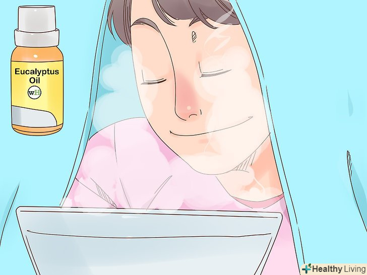 Робіть парові інгаляції з додаванням олії евкаліпта, щоб сприяти очищенню синусових пазух.Закип'ятіть на плиті каструлю з водою і капніть в неї пару крапель ефірного масла евкаліпта. Зніміть каструлю з плити і подихайте над парою, від неї виходить. Це допоможе вам позбутися від закладеності носа і помітно полегшить процес сякання.- Якщо у вас немає ефірного масла евкаліпта, то звичайна парова інгаляція теж може допомогти вам в боротьбі з нежиттю і закладеністю носа.[10]