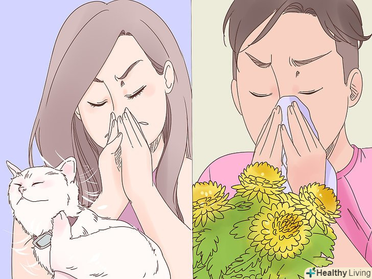 З тим щоб запобігти закладеність синусових пазух, уникайте контактів з відомими вам алергенами.зниження контакту з алергенами дозволить зменшити нежить і закладеність носа алергічного характеру, і тоді вам не доведеться занадто часто сякатися. Наприклад, у людей нерідко зустрічається алергія на лупу тварин і на пилок рослин.[11]- Якщо ви не впевнені в тому, на що саме у вас алергія, можна звернутися до лікаря для здачі аллергопроб.