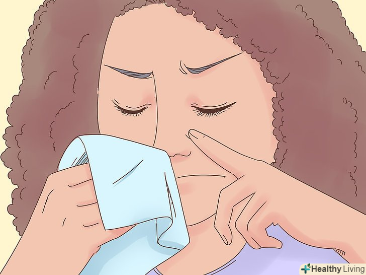 Видавіть слиз з носа, замість того щоб сякатися.Стисніть ніс в центральній частині і проведіть пальцями вниз у напрямку до ніздрів, щоб видавити слиз. Ця альтернатива сморканию не дасть вам випадково висякатися з надмірною силою.[5]