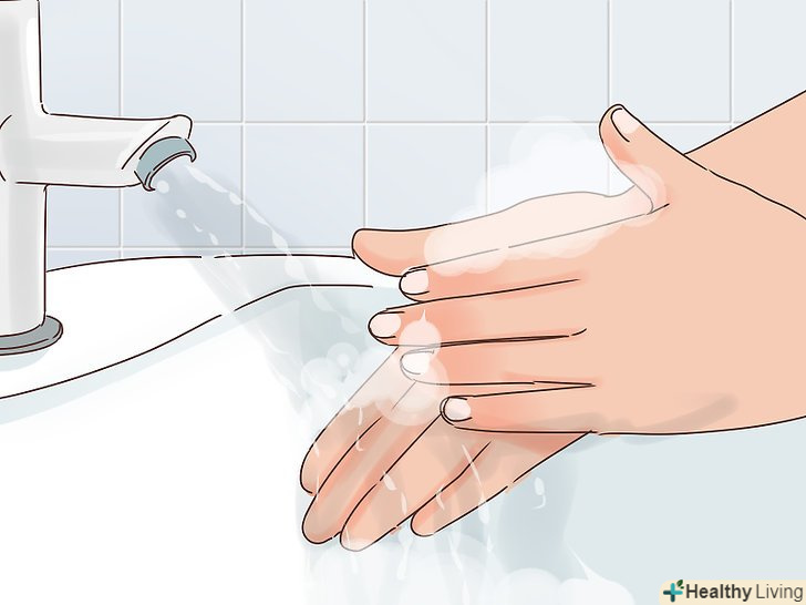 Вимийте руки.намильте руки милом і ретельно їх обполосніть під краном. Потім витріть руки рушником або серветкою. Так ви уникнете поширення патогенів і знизите ризик зараження оточуючих.[6]- Антибактеріальне мило нітрохи не краще справляється з патогенами, ніж традиційне мило.
