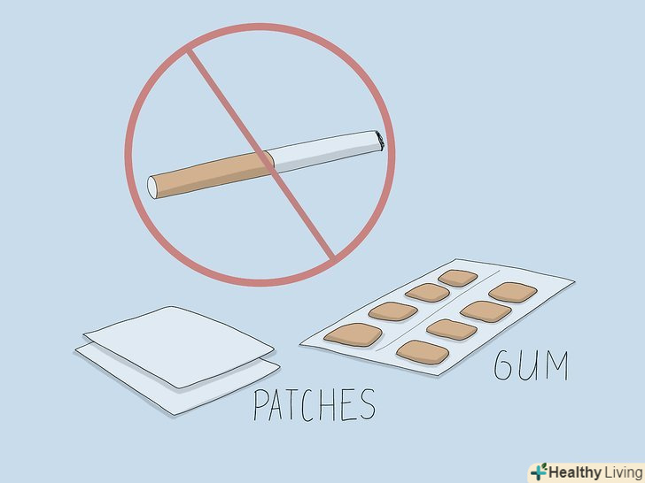 Якщо курите — кидайте.вам напевно відомо, що куріння негативно позначається на дихальній системі. Якщо ви усвідомлюєте шкоду куріння, але ніяк не можете кинути, поговоріть з лікарем про використання допоміжних засобів для відмови від куріння. Так ви подбаєте про своє респіраторне здоров'я.[12]- Наприклад, ваш лікар може виписати вам пластирі, жувальну гумку або рецептурні ліки, які допоможуть вам впоратися з нестерпним бажанням закурити. Крім того, він може підказати вам, де проводять групову терапію, яка підтримає ваше бажання позбутися від куріння.