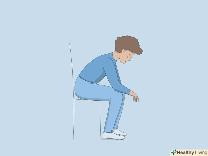Сядьте і нахиліться вперед, спираючись ліктями на коліна.Влаштуйтеся зручніше в кріслі, ступні притисніть до підлоги, потім злегка нахиліться грудьми вперед. Зігніть руки і покладіть лікті на коліна. Максимально розслабте шию і плечі. Залишайтеся в цьому положенні, поки дихання не нормалізується.[13]- Вам повинно полегшати через 2-3 хвилини.