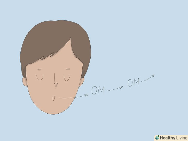 Повільно втягуйте повітря, потім видихайте, одночасно видаючи який-небудь звук, щоб дихання сповільнилося.повільно вдихайте через ніс, поки легені не наповняться. Потім, поки видихаєте через рот, видавайте тихий гуде звук. Продовжуйте гудіти, поки ваші легені не спорожніють. Це може допомогти вам уповільнити дихання і розслабитися.[5]- Зробіть кілька таких вдихів-видихів, щоб ваше дихання сповільнилося і стало рівним.