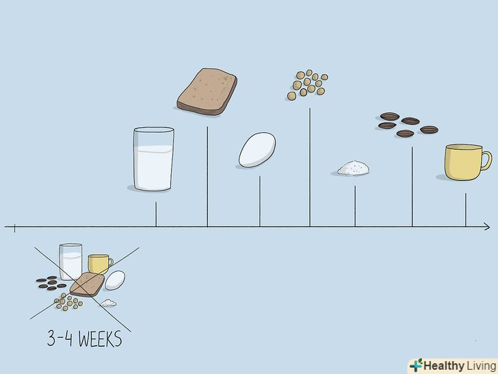 Дотримуйтеся гіпоалергенної дієти, щоб позбутися від підвищеної кишкової проникності.якщо їсти невідповідну їжу, це може викликати появу мікроскопічних отворів в кишечнику, які дозволять бактеріям і частинкам їжі просочитися туди, де їм не місце. Як наслідок, починається запалення, болі в тілі, яке намагається позбутися від «загарбників». Запалення може викликати проблеми з диханням і алергію. Дотримуйтеся гіпоалергенної дієти, щоб поліпшити здоров'я кишечника.[9]- Відмовтеся від поширених харчових алергенів, таких як молоко, глютен, яйця, соя, цукор, горіхи і кофеїн, на 3-4 тижні. Як тільки ви почнете відчувати себе краще, повертайте в раціон продукти по одному, щоб перевірити, чи шкодять вони вам. Перестаньте їсти їжу, через яку симптоми повертаються.
