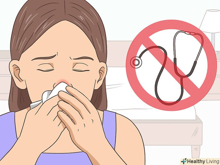 Знайте, коли слід звернутися до лікаря.якщо у вас звичайна застуда, лікар мало чим зможе допомогти вам. Доведено, що антибіотики неефективні при лікуванні звичайної застуди. Якщо ви знаєте, що у вас застуда, не витрачайте час на відвідування лікаря.[10]- Якщо симптоми не проходять або посилюються з плином часу, необхідно звернутися до лікаря. Тим більше слід звернутися за медичною допомогою в тому випадку, якщо ви відчуваєте значні труднощі з диханням.