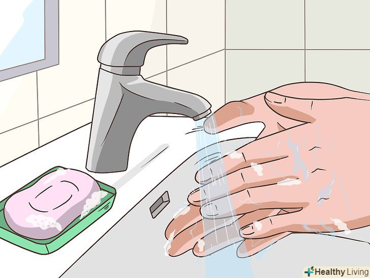 Мийте руки.віруси застуди та грипу легко поширюються і можуть потрапити практично в будь-яке місце. Ви можете заразитися при дотику до чого-небудь, наприклад до дверної ручки або телефону. Мийте руки кілька разів на день, особливо в сезон застуди та грипу.[12]- Мийте руки теплою водою з милом і при цьому намилюйте їх протягом хоча б 20 секунд. Після цього витирайте руки чистим рушником.