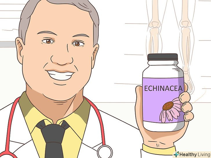 Приймайте рослинні засоби.ехінацею використовували протягом тривалого часу для зміцнення імунітету і лікування хвороб. Недавні дослідження показали, що ехінацея дійсно допомагає швидше позбутися від застуди. Однак і ехінацея, і інші рослинні засоби можуть викликати побічні ефекти. Порадьтеся з лікарем, перш ніж приймати ехінацею, так як вона може негативно взаємодіяти з іншими лікарськими препаратами і харчовими добавками.- Добавки з ягодами бузини також допомагають впоратися з симптомами застуди. Вони доступні в рідкій формі і у вигляді таблеток. Ягоди бузини мають протизастійну дію.