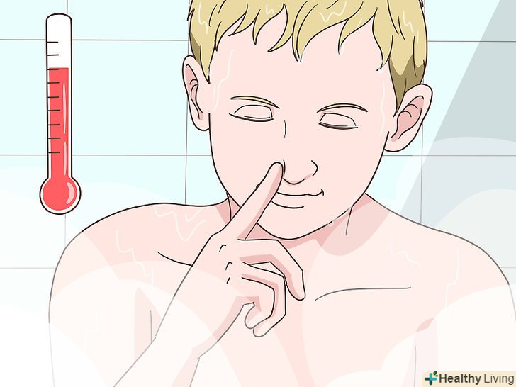 Використовуйте водяну пару.спробуйте прийняти гарячий душ. Це не тільки дозволить зняти м'язову напругу, але і допоможе зменшити закладеність носа. Поки ви перебуваєте в душі, обережно висякатися (по черзі затискайте одну ніздрю і видихайте повітря через другу). Ви помітите, що вам стало легше дихати.- Якщо у вас немає часу на душ, можна подихати парою іншим способом. Пустіть з крана гарячу воду, нахиліться над раковиною і накиньте на голову рушник. Глибоко подихайте, щоб прочистити ніс.