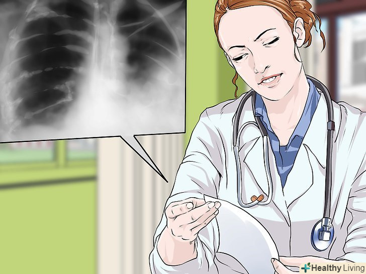 Пройдіть додаткові тести, якщо їх вам призначить лікар.існує кілька тестів, які може провести лікар, щоб визначити, чи є в легенях інфекція і що її викликало. Для цього лікар може призначити наступні тести:[8][9]- Рентген грудної клітини. З його допомогою лікар зможе побачити, чи є в ваших легенях інфекція і, якщо це так, з якого боку вона знаходиться і як сильно поширилася. Даний тест абсолютно безболісний. За допомогою рентгенівських променів лікар зробить знімок ваших легенів. Для захисту статевих органів вас можуть попросити надіти свинцевий фартух. Якщо ви думаєте, що вагітні, повідомте про це лікаря, так як рентген промені можуть нашкодити дитині.[10]