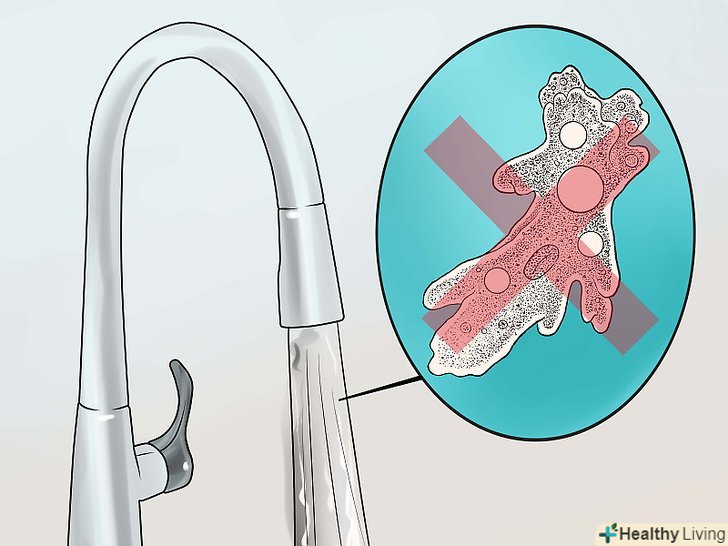 Використовуйте безпечну воду.воду з більшості побутових водопроводів можна пити, але в ній зазвичай містяться такі мікроорганізми, як бактерії, амеби та інші найпростіші. Як правило, вони нешкідливі в питній воді, так як шлунковий сік справляється з ними, але краще не допускати їх попадання на тонкі мембрани всередині носової порожнини.[7]- При використанні небезпечної водопровідної води для промивання носа можна заразитися бактеріальною інфекцією і амебним менінгітом, який часто призводить до летального результату.[8]
