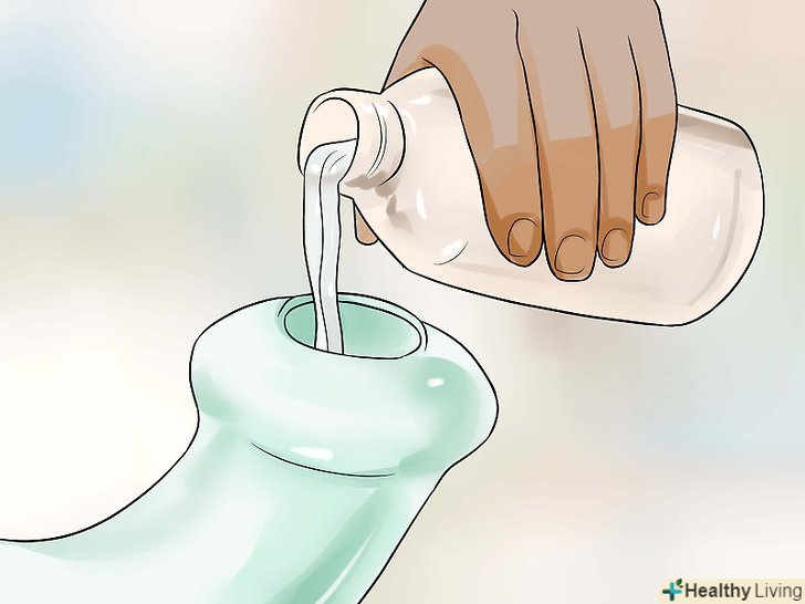- Розмішайте до повного розчинення солі і соди у воді. Налийте розчин у ваше пристосування для промивання.[15] Для приготування розчину потрібно використовувати тільки стерильні приналежності.