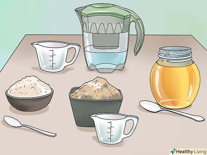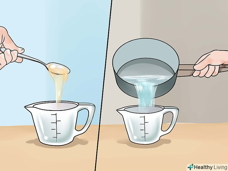 Змішайте воду, в якій ви розчинили порошок кореня алтея, з медом.Налийте мед в скляний мірний стаканчик. Потім додайте гарячу воду з коренем алтея, поки не отримаєте 1/4 чашки рідини.- Вилийте рідину, що залишилася, вона вам не знадобиться.