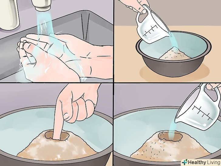 Додайте кору слизького в'яза.насипте порошок кори слизького в'яза в миску і всередині отриманої гірки зробіть невеликий отвір. В отвір залийте суміш меду з алтеєм.- Перемішайте інгредієнти руками. Не забудьте помити руки.