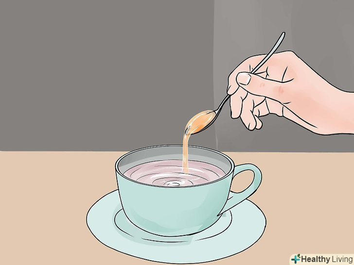 Додайте в чай мед, щоб посилити заспокійливий ефект.мед допомагає заспокоїти горло. Він також володіє антибактеріальними і цілющими (загоює рани) властивостями.[8]- Мед може також поліпшити смак чаю і зробити його більш приємним.
