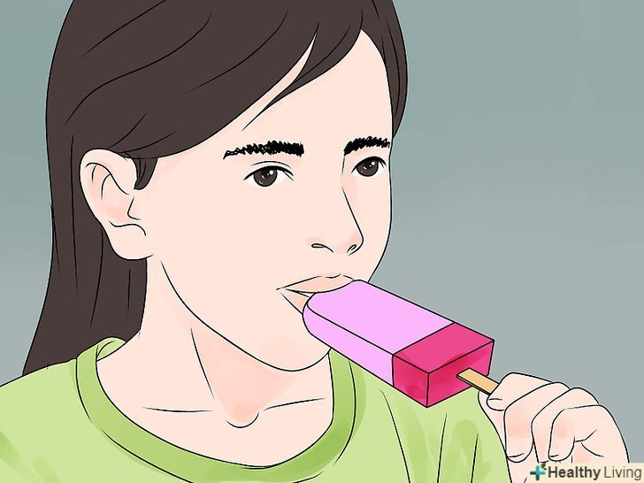 Спробуйте холодні продукти.деякі кажуть, що холод заспокоює горло краще, ніж тепло. Спробуйте розсмоктувати що-небудь холодне, наприклад, заморожений фруктовий сік або трав'яний чай.- Дітям, як правило, більше подобаються трав'яні чаї.