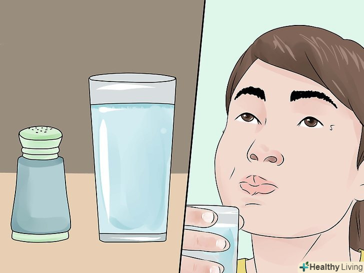 Щоб тимчасово вгамувати біль в горлі, полощіть його солоною водою.візьміть ½ –1 чайну ложку морської солі (або кухонної солі) і додайте в склянку з теплою водою. Перемішайте і полощіть горло протягом 10-20 секунд. Виплюньте рідину.[11]- Полоскати горло таким чином можна хоч кожну годину.
