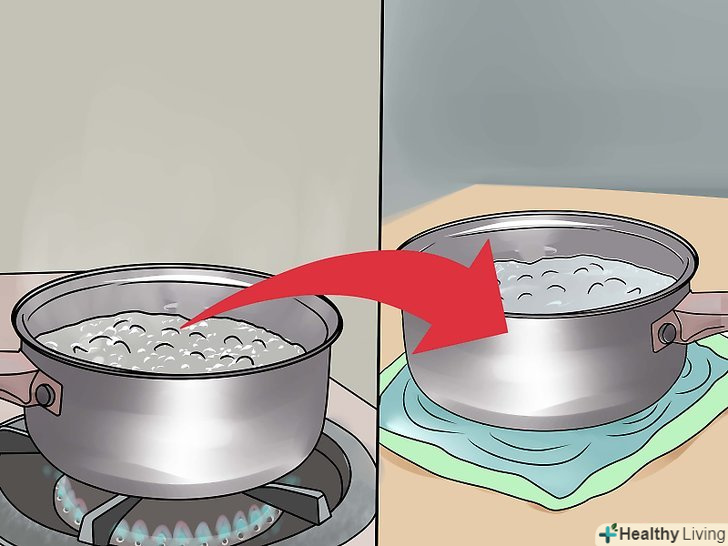 Закип'ятіть воду.вдихати пару, особливо з травами — - це відмінний спосіб заспокоїти горло. Для початку налийте близько 5 см води в каструлю. Поставте каструлю на плиту і включіть вогонь.