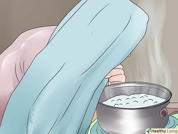 Дихайте парою.накрийте рушником голову і нахиліть її над каструлею. Завдяки цьому пар буде залишатися під рушником. Потім робіть глибокі вдихи, вдихаючи пар через ніс і рот.- Вдихайте пар протягом двох-чотирьох хвилин.