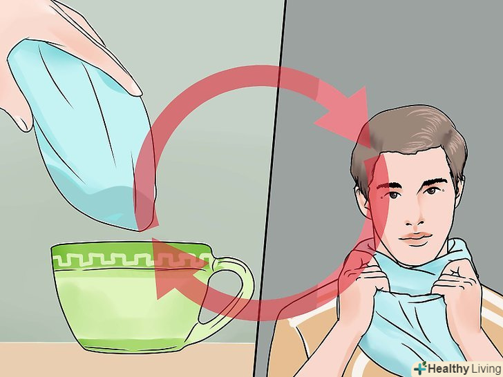 Оберніть теплий рушник навколо шиї і залиште його до тих пір, поки воно не охолоне.покладіть рушник на плечі, потім оберніть його навколо шиї немов шарф. Дихайте глибоко, щоб вдихати всі аромати трав. Як тільки рушник охолоне, зніміть його.[4]