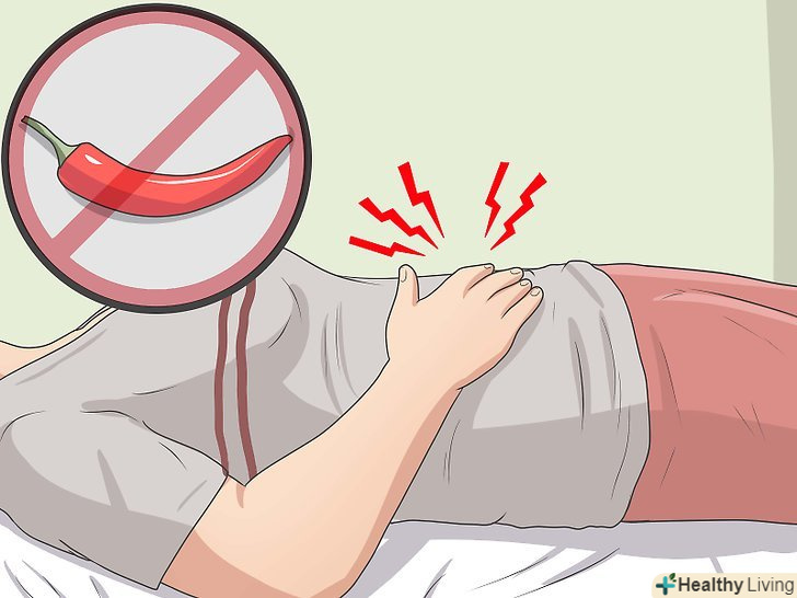 Уникайте дратувати шлунок.якщо у вас гастроезофагеальнорефлюксна хвороба (ГЕРХ) або печія, вживайте заходів, щоб звести до мінімуму їх наслідки.[33] Не лягайте протягом 3 годин після прийому їжі і уникайте вживання гострої їжі та інших продуктів, що провокують печію.