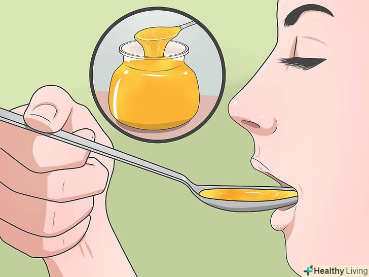 Пом'якшіть горло за допомогою меду.Текуча текстура меду зволожить мигдалини і зніме роздратування горла (а значить, і позиви до кашлю). Хороший мед може бути не менш ефективний, ніж ліки від кашлю![14]- Альтернативою меду може послужити вода, настояна на рожевих пелюстках. Рожева есенція допомагає вивести мокроту.
