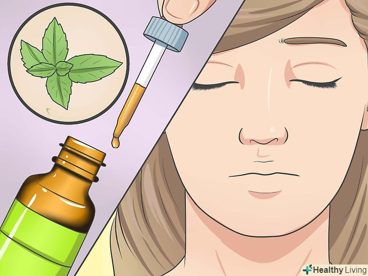 - Щоб зняти закладеність носа, капніть 1-2 краплі ефірних масел на руки, потріть їх один об одного, піднесіть до носа і зробіть 4-6 глибоких вдихів. Ви також можете нанести 2-4 краплі олії на ватяну кульку, запечатати його в пакетик із застібкою і взяти з собою.[16]