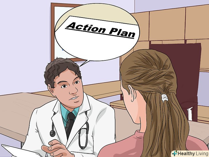 Складіть з лікарем план лікування.лікар допоможе вам розробити письмовий план дій у разі нападу астми або кашлю. Такий план повинен являти собою список кроків, які необхідно виконати, щоб нормалізувати дихання. Крім того, в ньому повинні міститися телефонні номери невідкладної допомоги та інших необхідних медичних служб.[12]- Лікар пояснить вам відмінності між зеленими, жовтими і червоними пунктами плану. У кожному з цих розділів перераховані характерні симптоми, рекомендовані препарати і лікування, а також найближчі місця, де можна отримати кваліфіковану медичну допомогу.[13]
