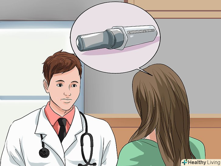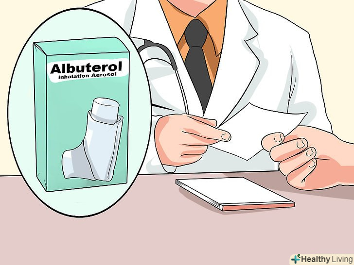 Контролюйте астму за допомогою препаратів для короткочасного використання.при нападах кашлю вам можуть порекомендувати використовувати інгалятор. Інгалятор призначений для швидкого введення препаратів (наприклад, бета-адреноміметики короткочасної дії) в дихальні шляхи з метою їх розширення. Лікар може призначити [14][15] сальбутамол, левосальбутамол, пірбутерол, іпратропіум або кортикостероїди.[16]- Щоб скористатися інгалятором, струсіть його. Досить як слід струсити інгалятор 3-4 рази. Після цього зніміть з інгалятора кришку і видихніть з легких повітря.
