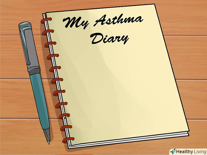 Контролюйте стан своїх легенів.якщо вам складно виявити тригери астми, обговоріть з лікарем можливість стежити за максимальною об'ємною швидкістю видиху за допомогою невеликого портативного приладу (пікфлоуметра). Таким чином ви зможете визначити, наскільки ефективно ваші легені видихають повітря. При звуженні дихальних шляхів падає максимальна швидкість видиху. Регулярно перевіряйте швидкість видиху і записуйте в щоденник те, чим ви займалися і що їли, — це допоможе вам і Вашому лікарю виявити тригери астми.[4][5]- Кількісні характеристики роботи легенів особливо корисні в тих випадках, коли тригери не викликають негайний напад кашлю. Іноді між впливом відповідних факторів і нападом астми проходить деякий час.
