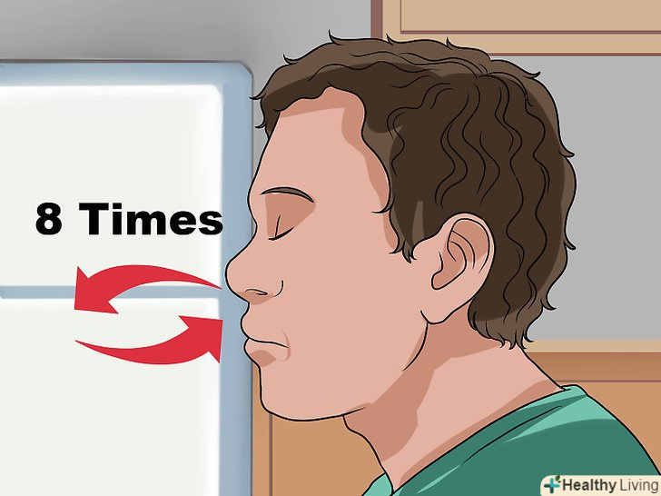 Розслабтеся.намагайтеся не дихати глибоко під час нападу астми. Деякі лікарі вважають, що глибоке дихання ще більше дратує дихальні шляхи.[8] замість цього повільно вдихайте повітря через ніс і стежте, щоб вдих і видих займали однаковий час. Наприклад, протягом вдиху порахуйте до 8, надовго затримайте дихання, а потім видихніть на рахунок 8. При цьому постарайтеся заспокоїтися і розслабитися.- Хоча під час даної вправи приплив кисню трохи зменшиться, він залишиться приблизно таким же, як при кашлі. Контроль дихання за допомогою рахунку допоможе пом'якшити кашель та інші симптоми астми.[9]