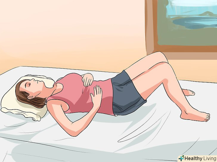 Спробуйте займатися дихальними вправами йоги.напади кашлю при астмі можуть привести до паніки і втрати контролю. Постарайтеся заспокоїтися і нормалізувати дихання: прийміть розслаблюючу дихання позу йоги. Ляжте на спину і зігніть ноги в колінах, так щоб ступні залишалися на ліжку. Покладіть руки на живіт і підкладіть під голову подушку, щоб вам було зручно. Закрийте очі і при кожному видиху втягуйте живіт.[10]- Мета даної вправи полягає в тому, щоб розслабити дихання і за рахунок цього полегшити кашель. Дихайте повільно і постарайтеся відволіктися від тривожних думок і заспокоїти свій розум.