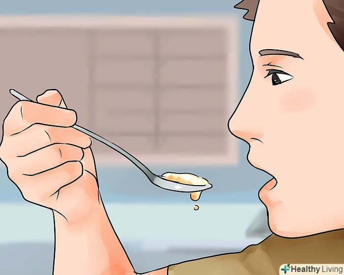 Їжте мед.хоча мед зазвичай рекомендують при болю в горлі, він допомагає також зняти роздратування і позбутися від сухості в горлі. Мед обволікає слизову оболонку горла і захищає її від роздратування і сухості.- Розведіть 1 столову ложку (15 мілілітрів) меду в склянці (250 мілілітрів) теплої або гарячої води.[3] можна також вичавити у воду лимон, щоб активізувати імунну систему. Пийте суміш 1-3 рази на день.