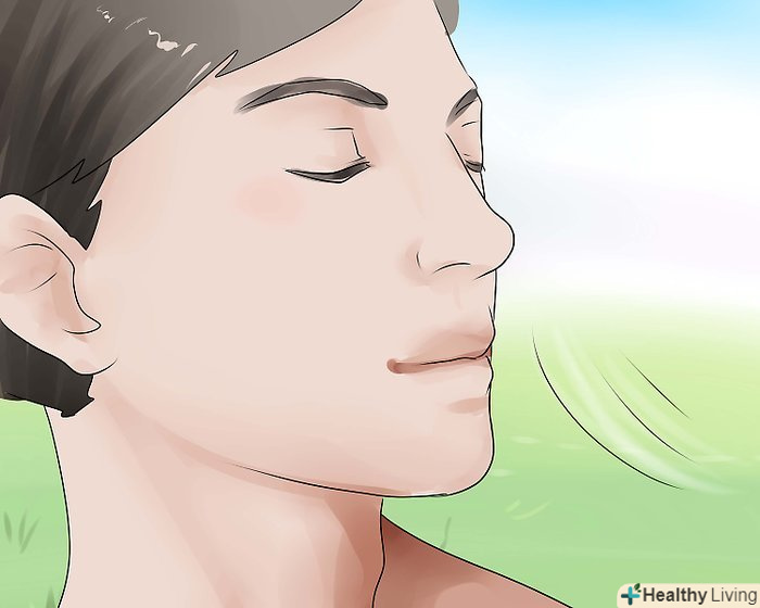 Дихайте носом.при диханні ротом повітря не фільтрується, і це підвищує ймовірність того, що він висушить слизову оболонку горла. У той же час при проходженні через ніс повітря фільтрується і стає більш вологим.- Якщо вам важко дихати носом через те, що він закладений, спробуйте приймати відпускаються без рецепта засоби проти закладеності носа, щоб вирішити цю проблему.[6]