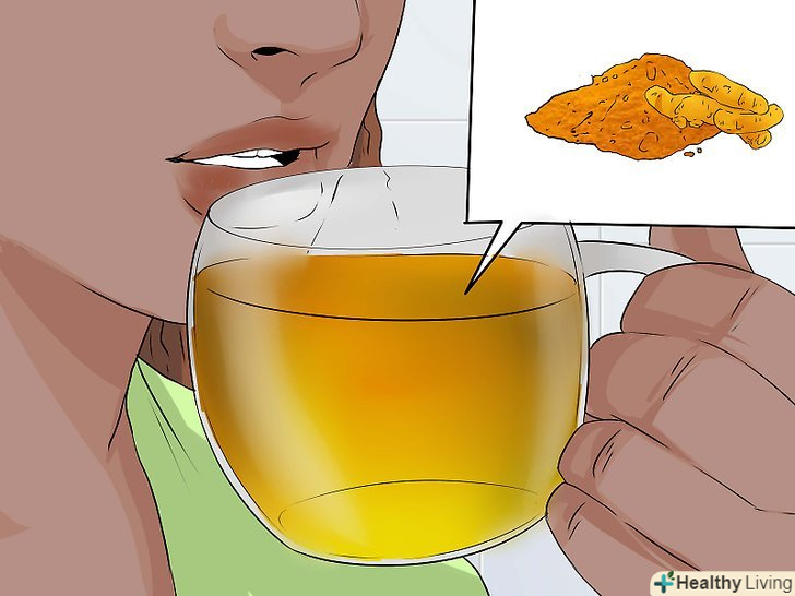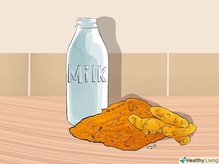 Приготуйте собі латте з куркумою і молоком.куркуму з теплим молоком традиційно використовують як засіб проти застуди та кашлю, так що варто їх спробувати.[13] Візьміть пів чайної ложки (2 грами) куркуми і додайте її в склянку теплого коров'ячого молока.- Якщо вам не подобається коров'яче молоко, додайте куркуму в мигдальне, рисове або конопляне молоко.