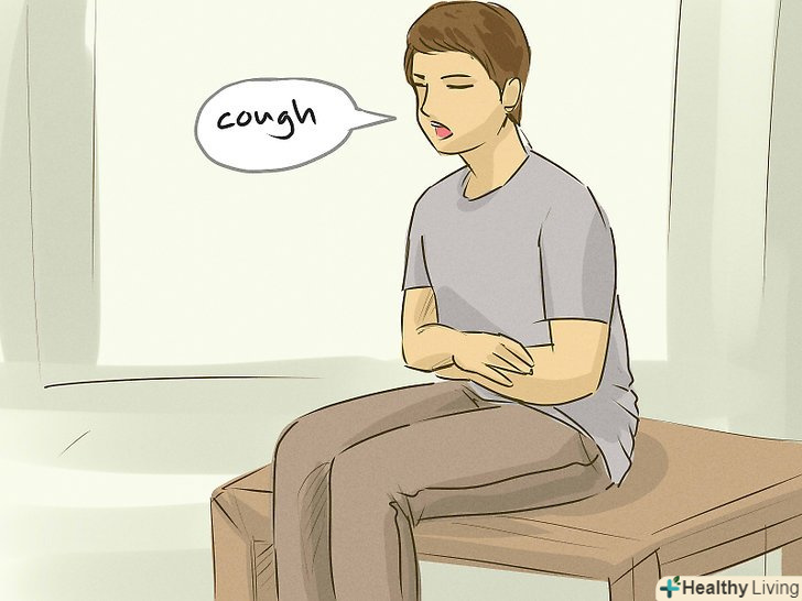 Спробуйте метод контрольованого кашлю.кашель є природним способом, за допомогою якого ваш організм позбавляється від виділень в легенях.[2] цей метод можна практикувати і під час бігу. Дійте наступним чином:[3]- Сядьте на стілець або лавку. Нахиліться вперед і покладіть руки на живіт. Нахил вперед сприяє максимальному розширенню легенів.