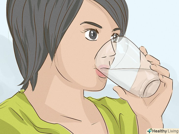 Пийте достатньо води до і після пробіжки.рідина необхідна вашому організму для того, щоб розбавляти слиз і виділення.[6] Вода зробить виділення в легенях більш рідкими, і ви легше зможете відкашлятися.- Намагайтеся пити воду невеликими порціями протягом усього дня. Кожній людині необхідна певна добова норма рідини. В середньому добова норма води для дорослої людини становить 3 літри для чоловіків і 2,2 літра для жінок.