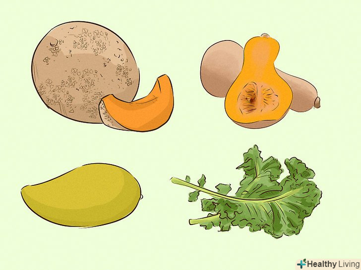 Вживайте вітамін A. Одна з функцій вітаміну А полягає в тому, щоб допомагати відновлювати слизову оболонку внутрішніх органів, що сприяє зміцненню легенів. У морквяному соку міститься велика кількість бета-каротину, який переробляється в організмі в вітамін A.- Багато вітаміну A міститься в солодкій картоплі, темних листових овочах, гарбузі, латуці, сушених абрикосах, мускусної дині, червоному перці, м'ясі тунця, устрицях, манго.