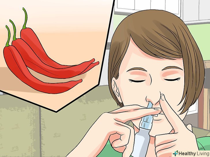 Використовуйте розведений спрей з кайенским перцем.Кайенский перець використовується в народній медицині для зміцнення капілярів і поліпшення кровообігу, а також для лікування поліпів. Цей спрей можна купити в інтернеті або пошукати в магазинах спецій і натуральної косметики. Він допоможе позбутися від болю, а також зменшить поліпи.[16]- Спрей повинен бути розведеним, інакше він викличе подразнення слизової оболонки. Спрей не повинен потрапляти в очі і відкриті рани.