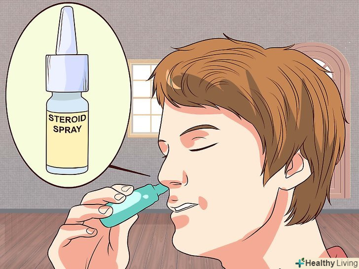 Використовуйте спреї зі стероїдами.Спреї для носа зі стероїдами можуть зменшити розмір поліпів. Якщо поліпи маленькі, вони можуть і зовсім зникнути. Деякі спреї зі стероїдами продаються без рецепта, а сильніші-тільки за рецептом лікаря. Запитайте лікаря, чи показаний вам спрей, і спробуйте ним користуватися.[3][4]- До складу спреїв зі стероїдами часто входить беклометазон, будесонід, флутиказон, мометазон, триамцинолон. Найпопулярніший препарат - »Момат Ріно".