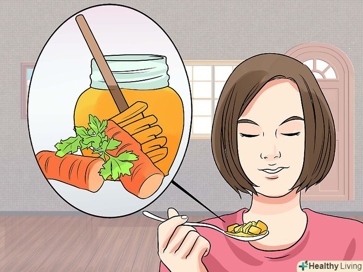 Харчуйтеся правильно.щоб імунна система вас не підводила, важливо отримувати з їжею всі необхідні вам поживні речовини. Кількість кожного з поживних речовин визначається вагою, віком і загальним станом здоров'я. Поговоріть з лікарем про харчування або прочитайте цю статтю, щоб знати, що вам варто їсти.[19]- Намагайтеся щодня їсти нежирний білок, цільнозернові вуглеводи, ненасичені жири, знежирені молочні продукти, а також багато фруктів і овочів.