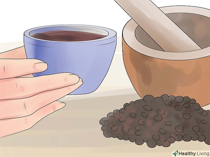 Спробуйте чай з чорним перцем.ви помічали, що коли їсте що-небудь з великою кількістю чорного або будь-якого іншого перцю, то починає текти з носа і очі наповнюються сльозами? Це відбувається тому, що перець стимулює слизову оболонку, сприяючи відтоку слизу. Це означає, що якщо вас турбує мокрий кашель, чорний перець допоможе відтоку слизу, що закупорила легені і задні стінки легенів. Покладіть столову ложку свіжомеленого чорного перцю в чашку окропу і дайте йому настоятися протягом 15-20 хвилин. Процідіть суміш, а потім додайте мед за смаком. Пийте регулярно, щоб очищати горло від слизу.[2]