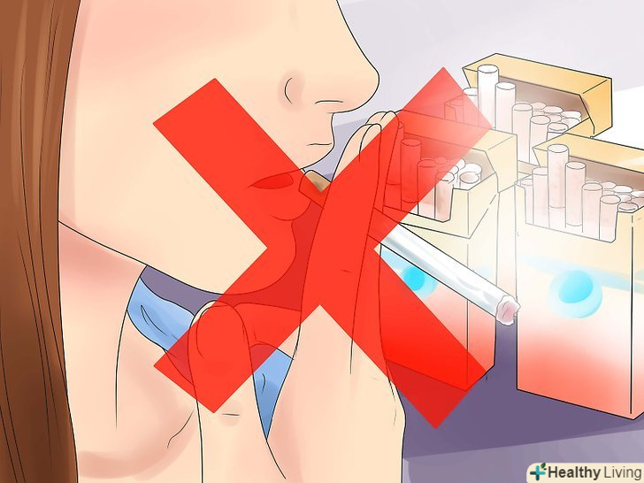 Киньте палити.якщо і можна чимось погіршити кашель, так це курінням або своїм перебуванням серед людей, що палять. Дим і тютюн, вдихувані від сигарети або сигари, сильніше дратують легені і горло, через що кашель триває довше і стримати його ставати важче. Хоча бажано взагалі відмовитися від куріння, вам потрібно докласти всіх зусиль, щоб не курити під час вашої хвороби.