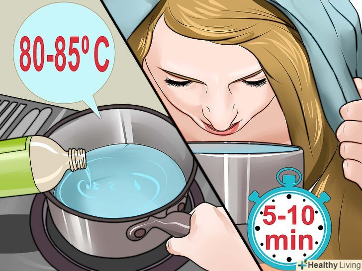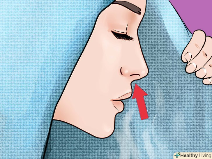 Дихайте.протягом п'яти секунд вдихайте носом і видихайте ротом. Потім зменшіть час вдихів і видихів до двох секунд.[2]- Вдихайте протягом 10 хвилин або поки від води виходить пар.