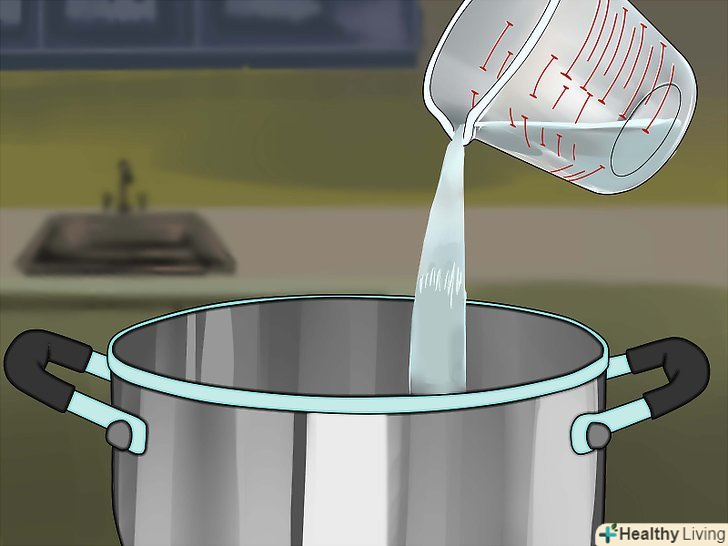 Налийте в каструлю 250 мл води.Закип'ятіть воду на плиті і кип'ятіть протягом 1-2 хвилин до утворення сильної пари. Потім зніміть каструлю з плити.[1]- Поставте гарячу каструлю на стіл, на термостійку підставку.