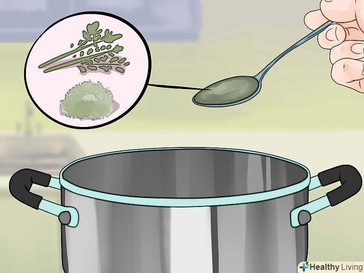 Скористайтеся сушеними травами.якщо у вас під рукою не виявилося вищезгаданих ефірних масел, можете замінити їх половиною чайної ложки сушених трав на 250 мл води.- Додайте трави і дайте їм з хвилину покипіти, потім вимкніть вогонь і зніміть каструлю з плити, після чого почніть робити інгаляцію.