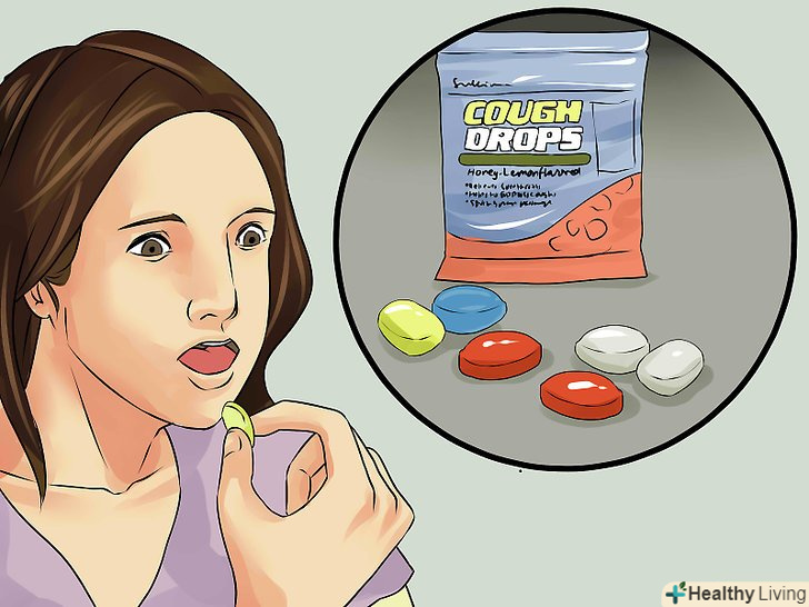 Використовуйте льодяники від кашлю.у продажу є безліч різних льодяників з самим різним смаком, які допомагають тимчасово полегшити кашель. Спробуйте льодяники з таким натуральним засобом від кашлю, як ментол. Ментол знеболює задню стінку горла і дозволяє позбутися від роздратування, яке викликає кашель.[9]- Якщо ви не переносите смак льодяників від кашлю, спробуйте посмоктати тверду цукерку-це також допоможе полегшити роздратування від кашлю.