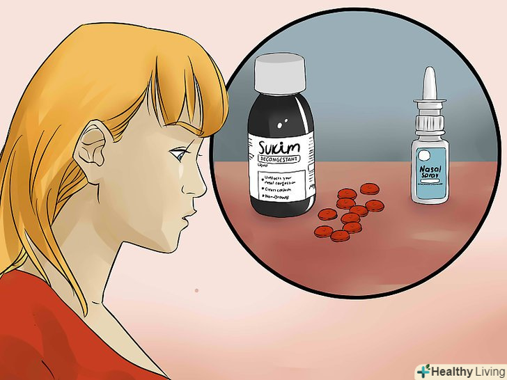 Спробуйте приймати безрецептурний протизастійний засіб.протизастійні засоби знімають набряк носових проходів і тим самим допомагають позбутися від слизу і полегшити закладеність носа. Крім того, вони висушують слиз в грудях і полегшують глибокий грудний кашель.[10]- Протизастійні засоби продаються у вигляді таблеток, рідких розчинів і назальних спреїв.