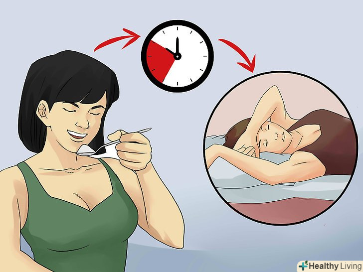 Вечеряйте задовго до сну.не лягайте спати незабаром після їжі, так як це може викликати симптоми ГЕРХ, в тому числі кашель. Зачекайте після їжі хоча б 3-4 години, перш ніж лягати спати. Залишайтеся у вертикальному положенні протягом хоча б 30 хвилин після прийому їжі.[17]